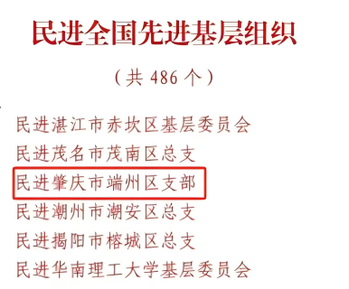 其中,民进肇庆市端州区支部荣获“民进全国先进基层组织”表彰。