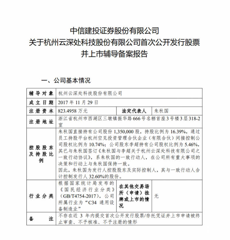 12月24日,证监会官网显示,杭州云深处科技股份有限公司(简称“云深处科技”)向浙江证监局提交IPO辅导备案,辅导券商为中信建投。