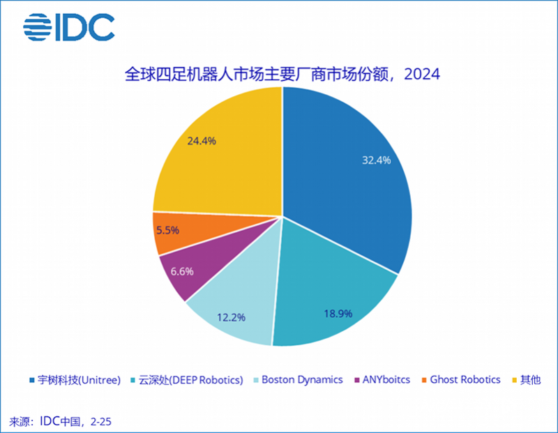 全球四足机器人市场份额紧随宇树