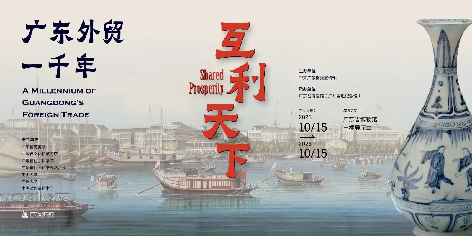 简介:本次展览由中共广东省委宣传部主办,广东省博物馆(广州鲁迅纪念馆)承办,精心遴选广东省博物馆及全国多家文博机构珍藏的逾200件(套)文物,以广东千年外贸发展脉络为主线,通过文物实证与制度演进的双重叙事,全方位展现广东在中国对外贸易史上的独特地位与深远影响,开启一场跨越千年的海上贸易文明对话。