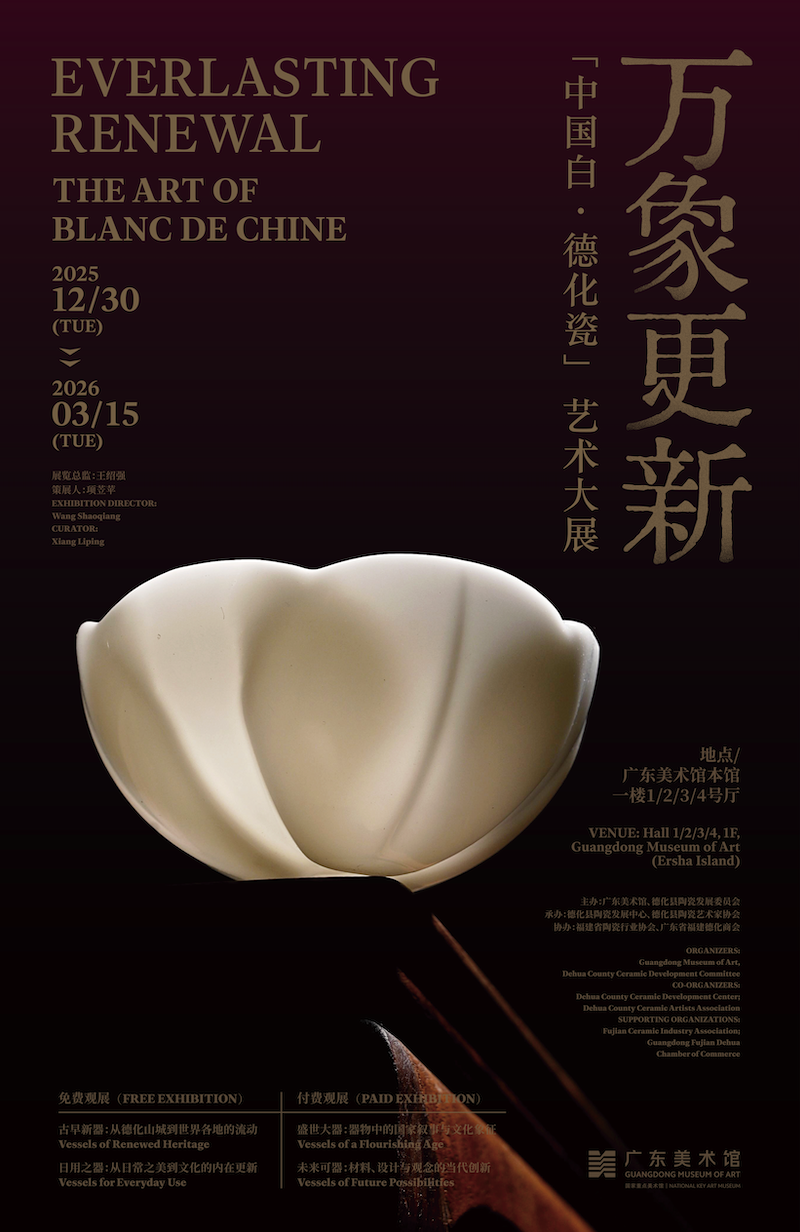 简介:德化瓷素有“中国白”之誉,其“白”不仅是色彩,更承载着清净、澄明、简淡的中国美学理想。将德化瓷带到广州这一海上丝绸之路的重要节点,既是追溯古代贸易与文明交流的轨迹,也是在当代国际视野中重新审视“中国白”的意义。展览关注德化瓷如何在时代变迁中,通过持续的自我更新展现文化本色。