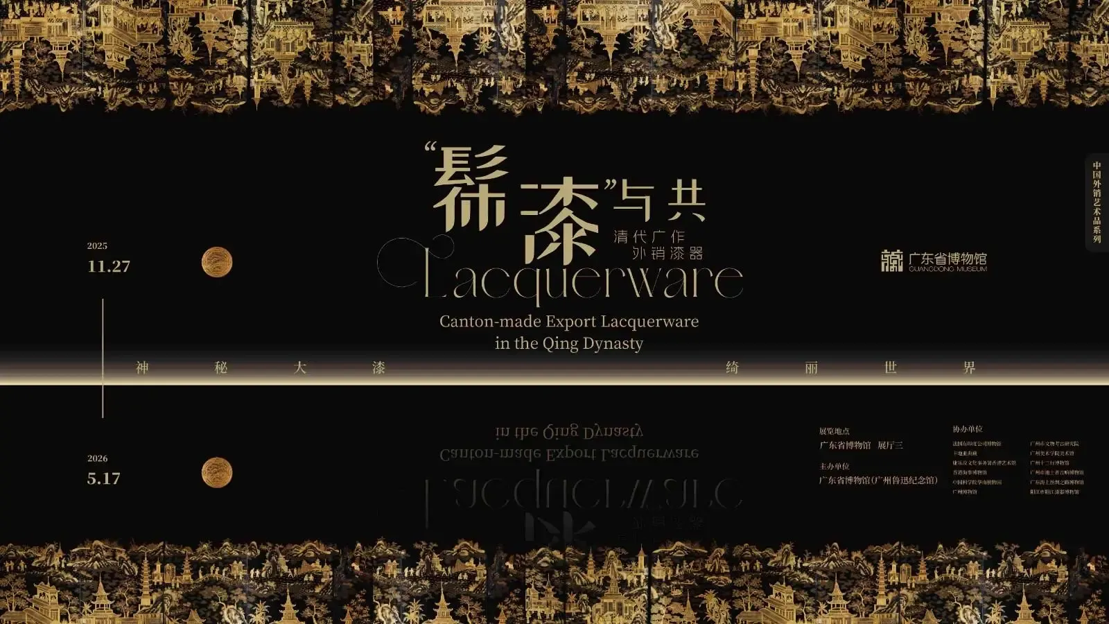 简介:展览以广东省博物馆的特色馆藏为依托,汇聚了洛里昂法国东印度公司博物馆、卡地亚典藏、香港艺术馆、香港海事博物馆等海内外多家机构收藏的130余件/套珍贵藏品,追溯中国漆艺的发展脉络,解密岭南漆艺的地方特色,呈现广作外销漆器在对外贸易与文化交流中的辉煌成就与贡献。