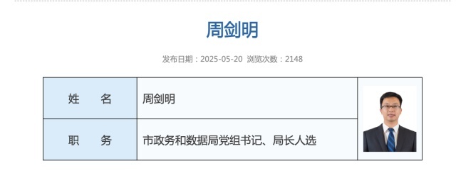 近日,深圳市政务和数据管理局官网更新机构领导信息,显示周剑明为该局党组书记、局长人选。
