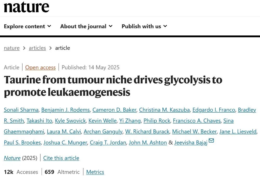 近期在顶级学术期刊《自然》(Nature)上发表的一篇论文可能会让很多人感到不安,因为文章标题中就赫然写着——肿瘤微环境的牛磺酸会促进白血病的进展[1]。