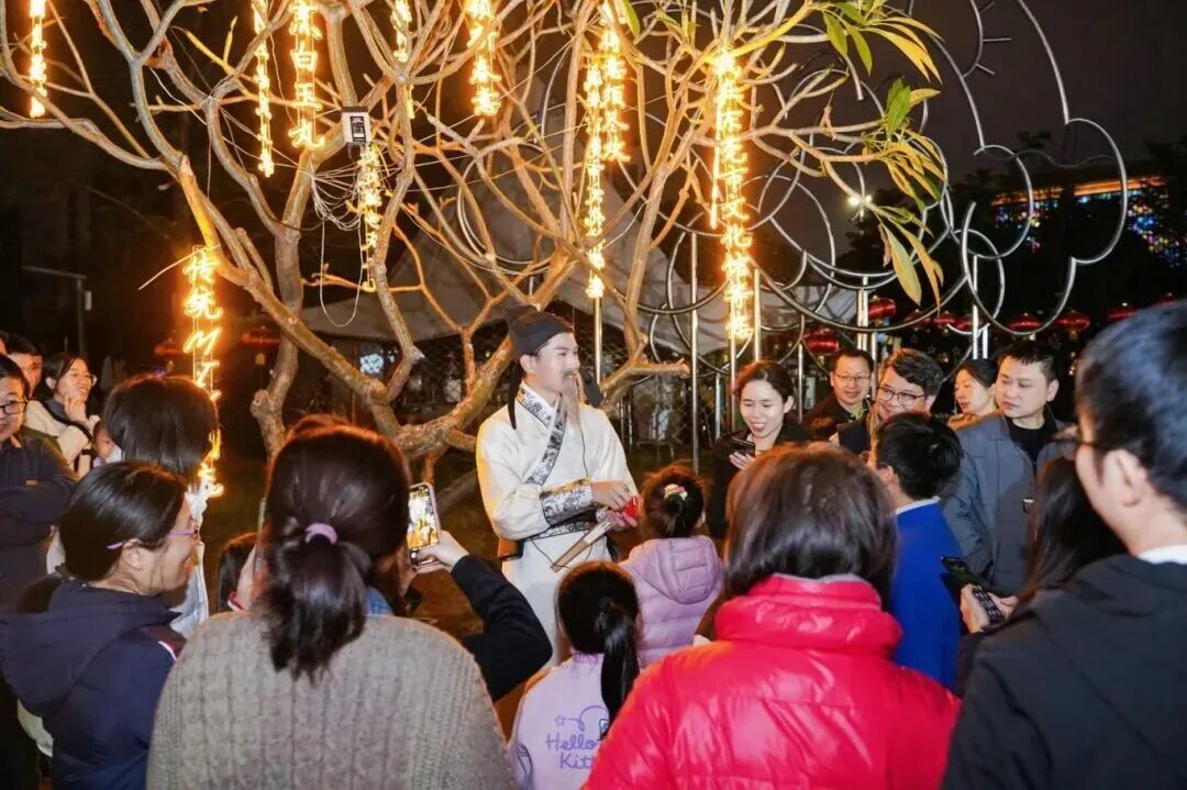 花灯与诗意区(东门广场):300条民俗、东莞本土、趣味生活类灯谜等你来猜,还有诗人NPC即兴对诗,飞花令、诗词填空轮番上阵,通关可领精美书签;