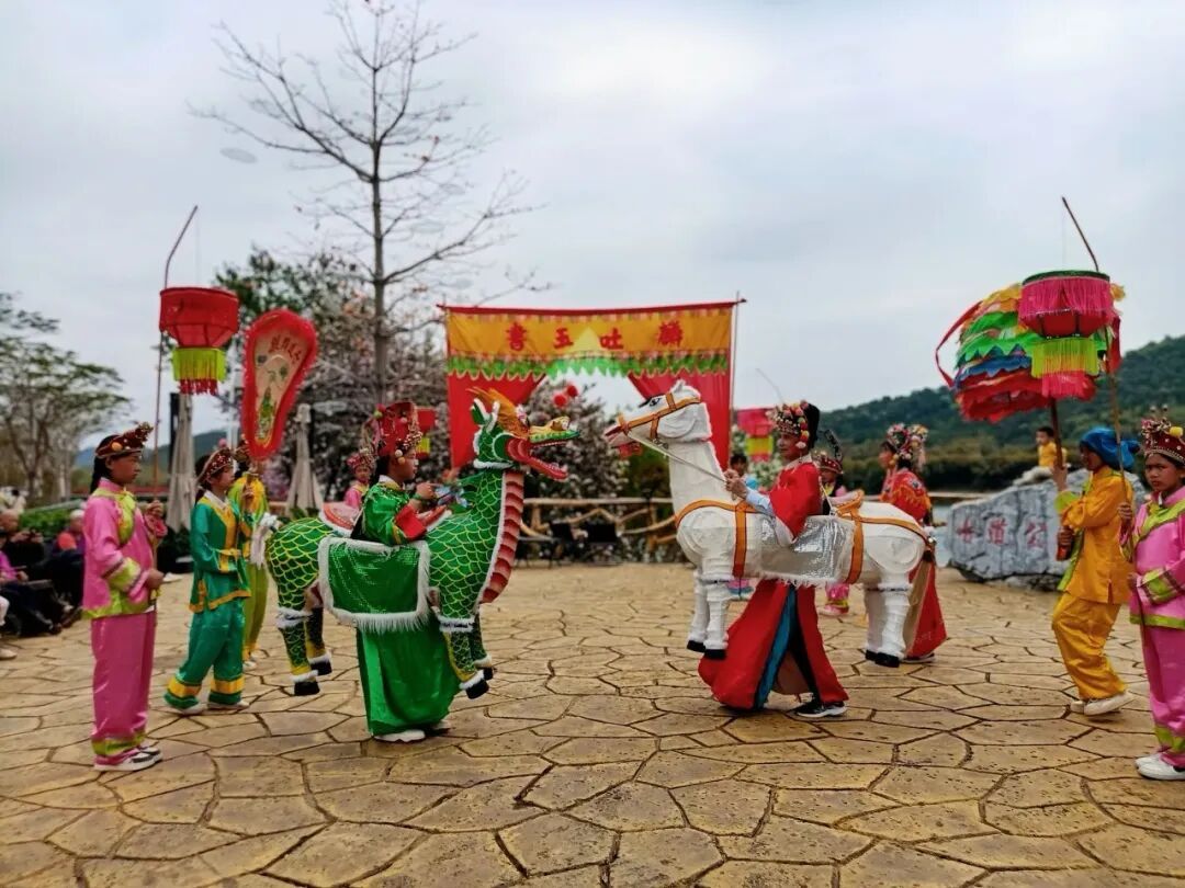 在风光秀美的龙皇岛公园,达人们还近距离观赏了《麒麟白马舞》表演,这项独具封开特色的省级非物质文化遗产,舞步灵动、服饰艳丽,承载着当地千年民俗文脉,传统民俗的独特魅力引得众人频频拍摄记录,让古老非遗借助流量出圈。
