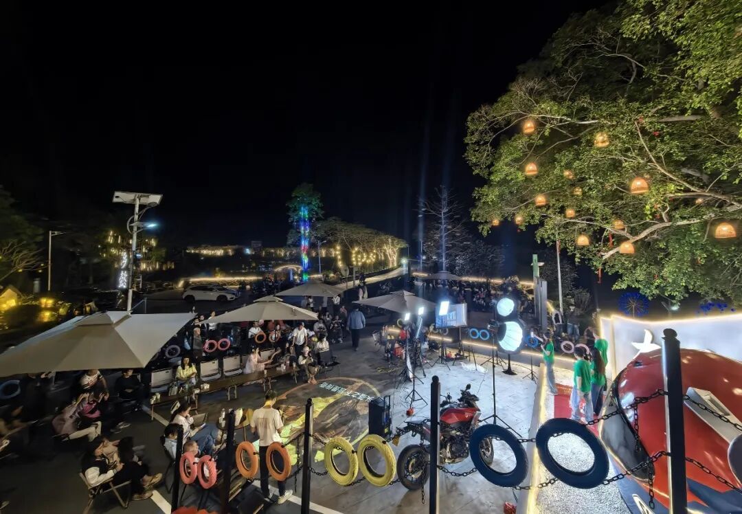 夜幕降临,大洲机车驿站摇身变成浪漫音乐现场,氛围感直接拉满。3月20日晚,网红达人们轮番上阵倾情驻唱,悠扬歌声伴着江畔晚风回荡,轻快旋律打破夜晚的静谧,既有治愈抒情的慢歌,也有活力满满的潮曲,吸引不少围观群众驻足聆听、互动打卡。灯光、音乐、江风、乡野交织在一起,勾勒出封开乡村夜经济的鲜活模样,让达人们真切感受到封开不仅有白日山水盛景,更有夜间潮玩新体验。