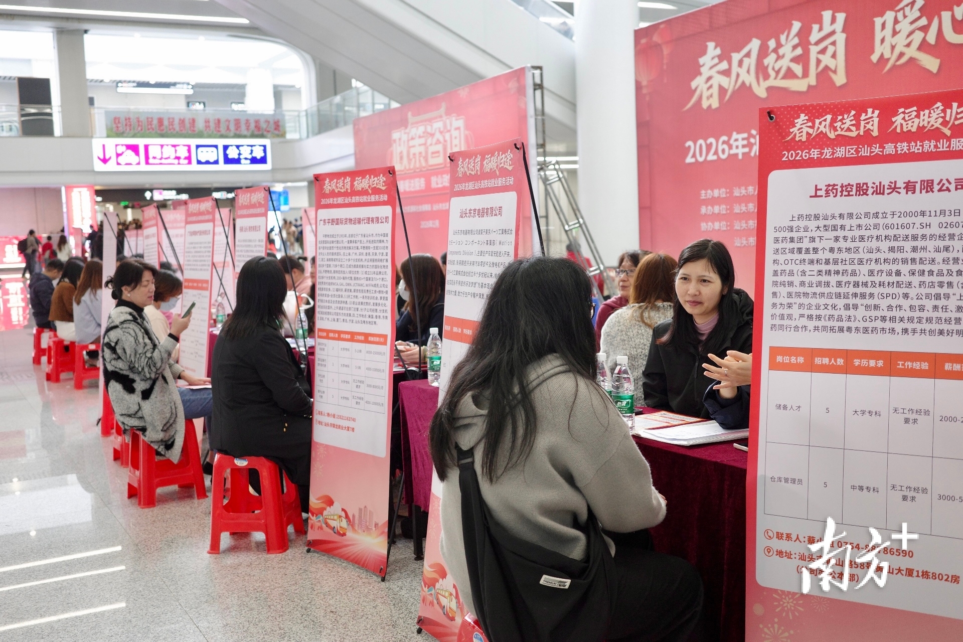 另一边,汕头火车站的出站口,公益接驳专车早已等候。现场设招聘专区投放669个急需岗位,政策答疑与岗位匹配一站式完成。