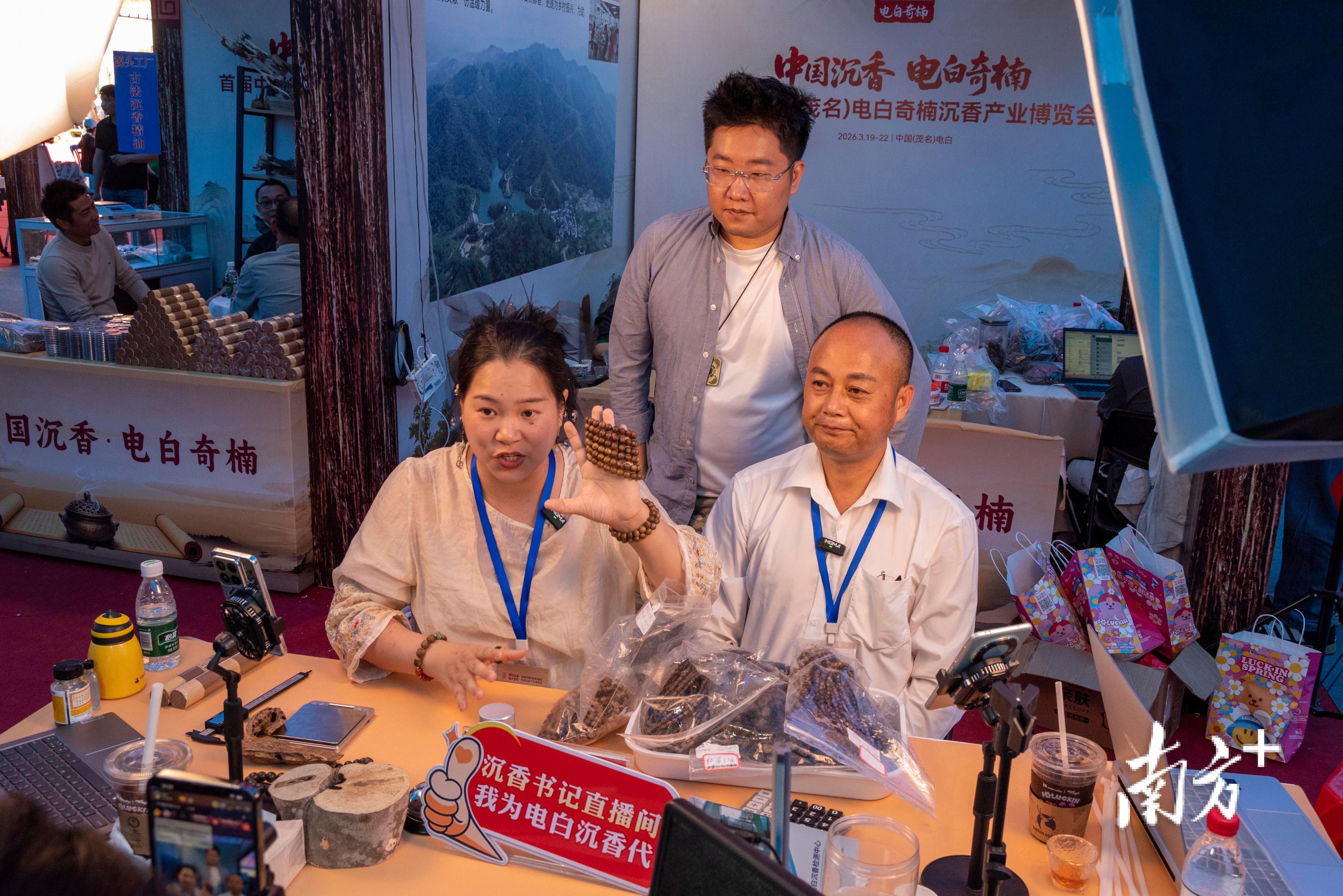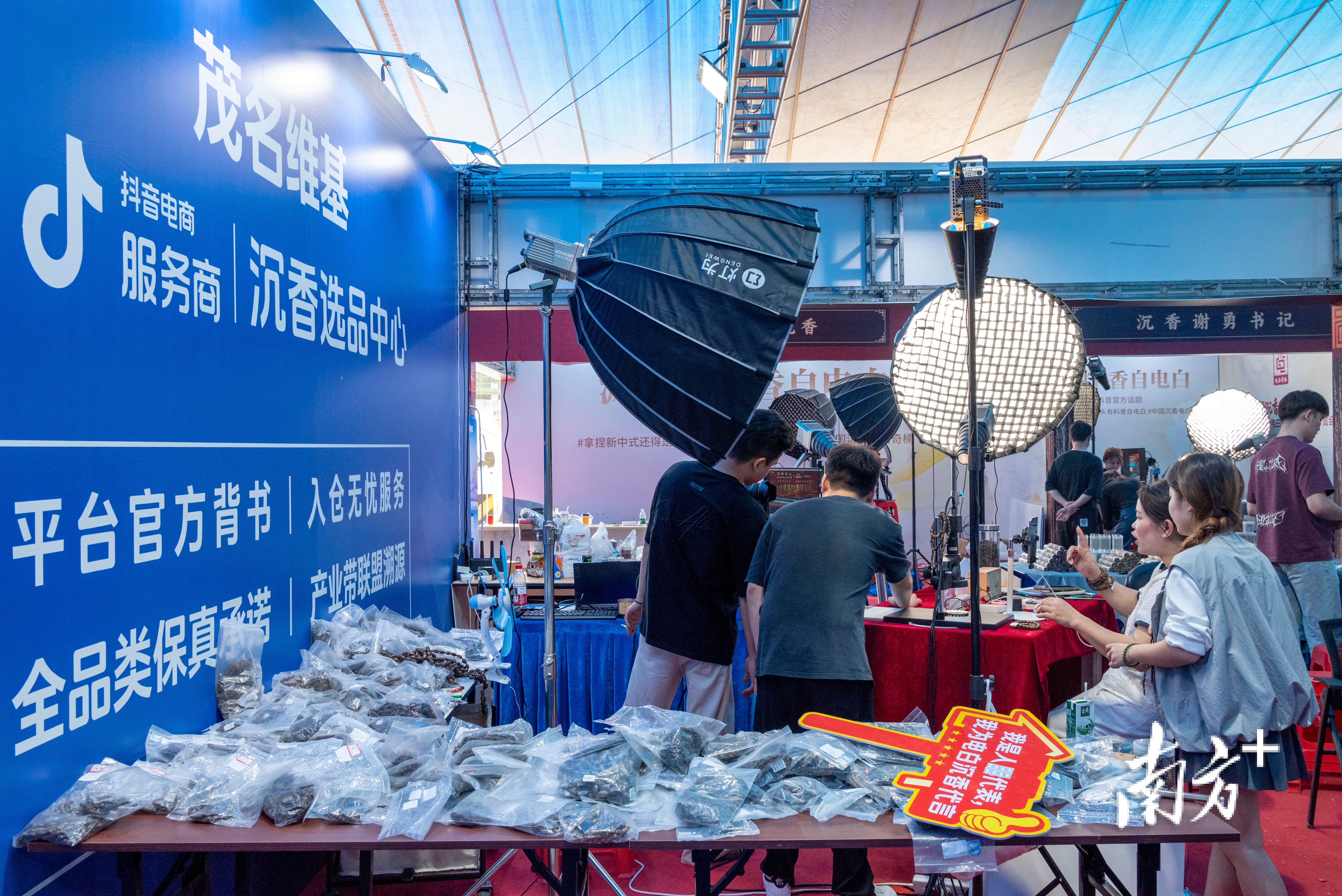 步入博览会主会场,8800平方米的展区内,各色沉香制品琳琅满目,空气中隐约飘散着奇楠的幽香。主播区,多个电商团队、网络达人手持沉香产品热情带货,让电白奇楠被更多线上观众知道。
