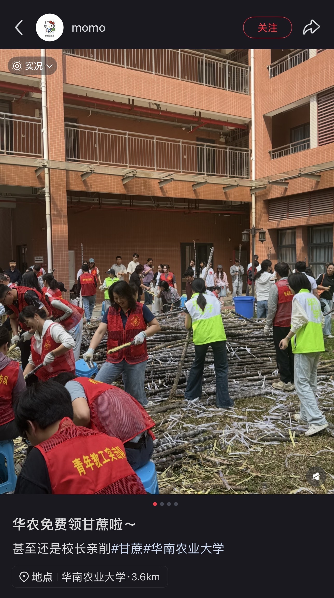 “华农免费领甘蔗啦,还是校长亲削!”