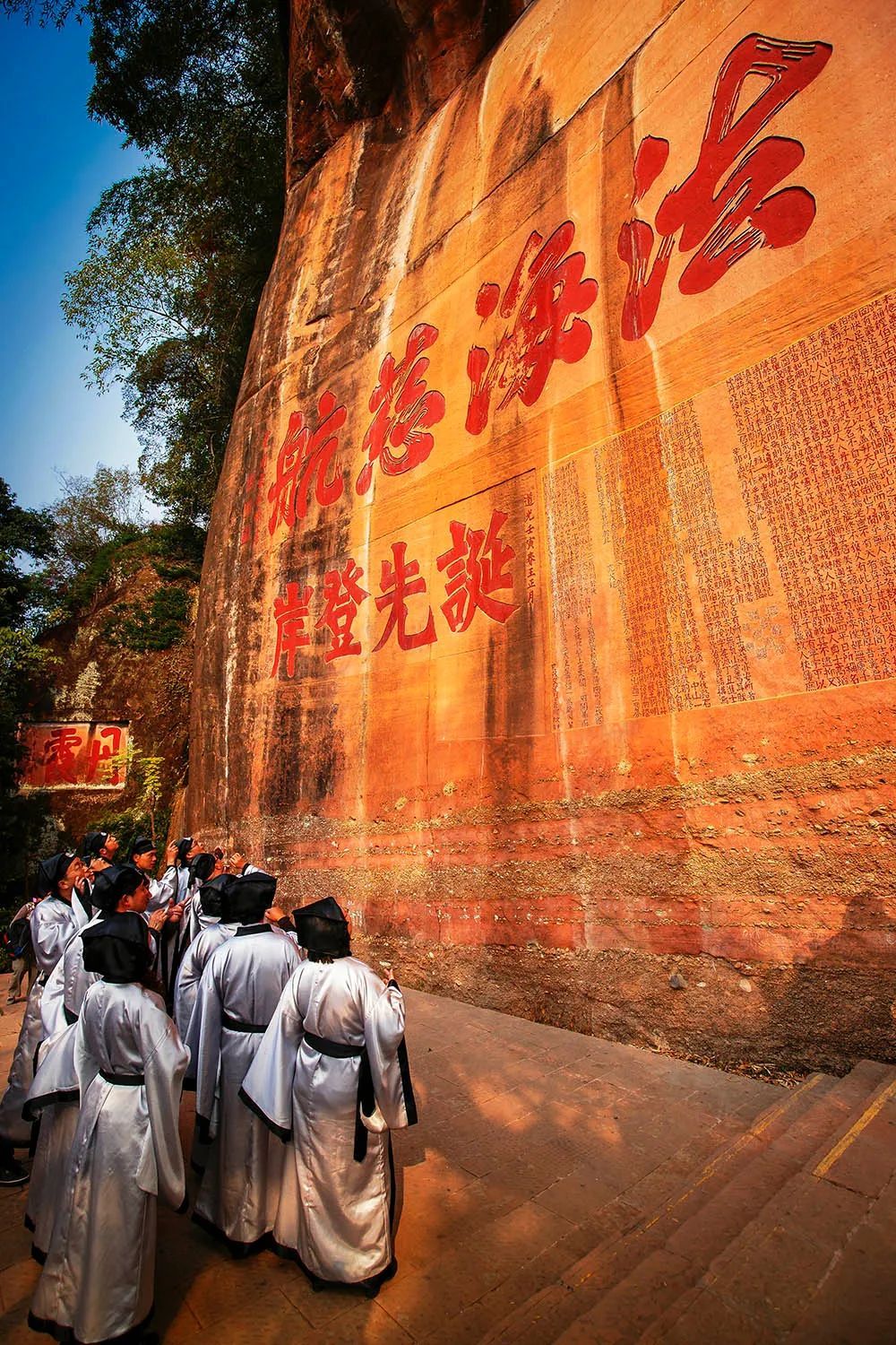 赤壁丹崖如画卷展开,晨雾晚霞日日相伴,摩崖石刻皆是前贤留墨,清风明月不请自来。韩愈叹曲江山水,苏轼赞此地为神仙宅,而你,索性弃了官场纷争,在此结庐而居。