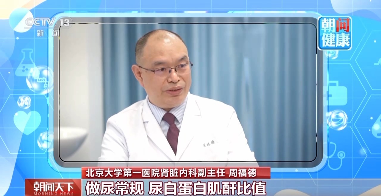 北京大学第一医院肾脏内科副主任 周福德:做尿常规、尿白蛋白肌酐比值,查肾功能比较简单的方法就是查血肌酐。还要做肾脏影像学检查,做肾脏超声看看肾脏大小结构有没有问题。此外,一定要查血压。