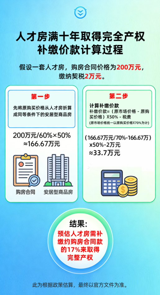 可售型人才房获得完整产权补缴差价示例