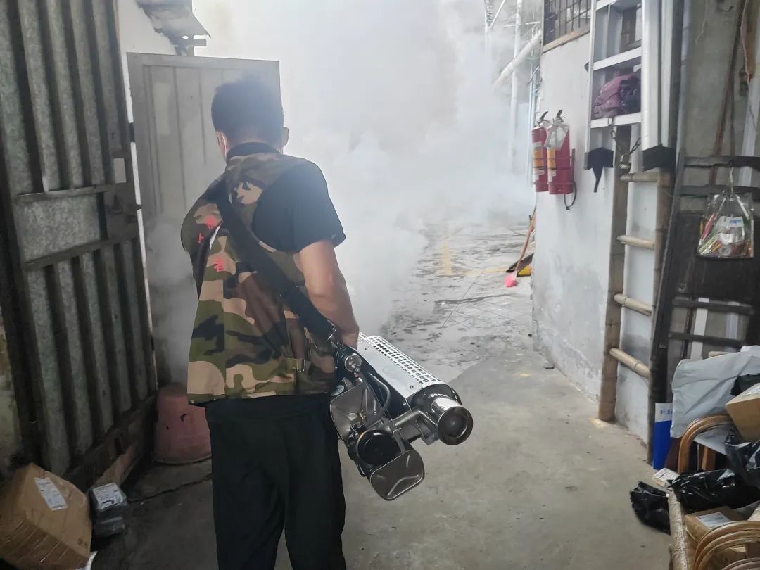 “这些积水容器就是蚊虫的‘产房’,必须逐个清理干净。”一位老兵志愿者说道。炎炎烈日下,老兵们化身“消杀尖兵”,背着数十斤重的喷雾器穿梭在居民楼院和绿化带中,对公共区域进行全方位药物消杀。汗水浸透了迷彩服,他们却无暇擦拭,始终保持着军人特有的严谨与专注,为保障人民群众生命财产安全和社会和谐稳定筑牢防线。