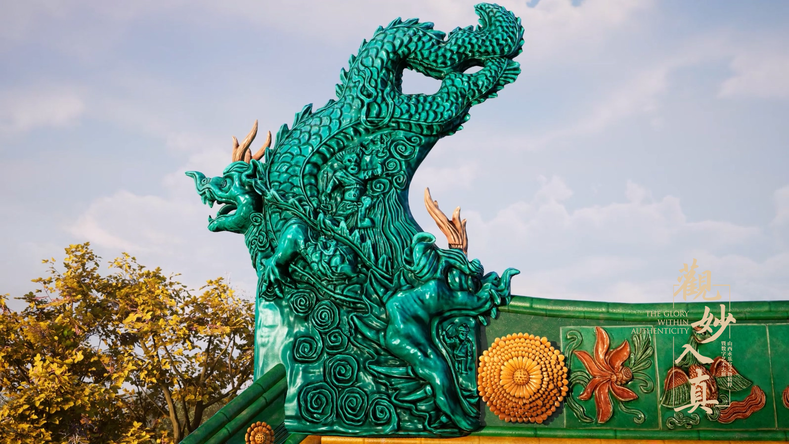 基于学术界的建筑测绘、色彩研究、文物修复等研究成果,凡拓数创借助三维激光扫描与高精度3D建模技术,永乐宫的建筑布局、琉璃鸱吻、浮雕花饰等百余处细节均被精准复原。再现了七百年前永乐宫的建筑布局与壁画风貌。