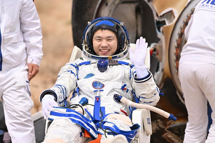 4月30日,神舟十九号航天员王浩泽安全顺利出舱。新华社记者 李鑫 摄