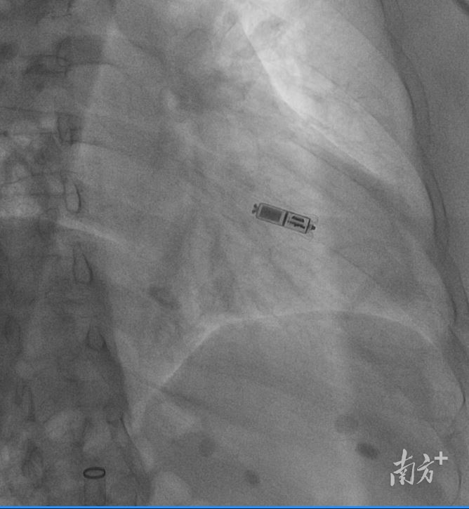 在分析了患者病情和充分考虑患者及其家属意愿后,暨南大学附属第五医院杨德光主任和团队专家们为患者量身定制了缜密的手术方案,采用最新一代Micra AV无导线起搏器植入方案。此起搏器无需植入电极导线,也无需在胸前皮下制作囊袋,起搏器可以直接植入在心腔内,无伤疤、无切口,患者在植入后几乎感觉不到起搏器的存在,很大程度上提升了患者的治疗体验,也确保了生理且精准的治疗效果。