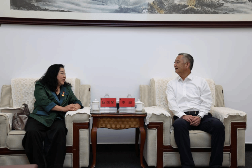 9月8日,李湖在思源学堂大礼堂会客厅会见“海空卫士”王伟烈士妻子阮国琴。郑丹婷 摄