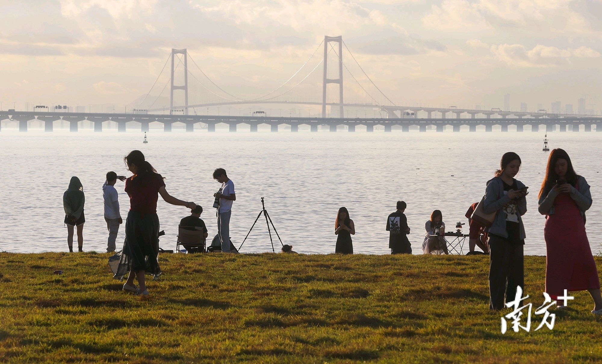 不少游客来到深中通道日出观赏点拍照。