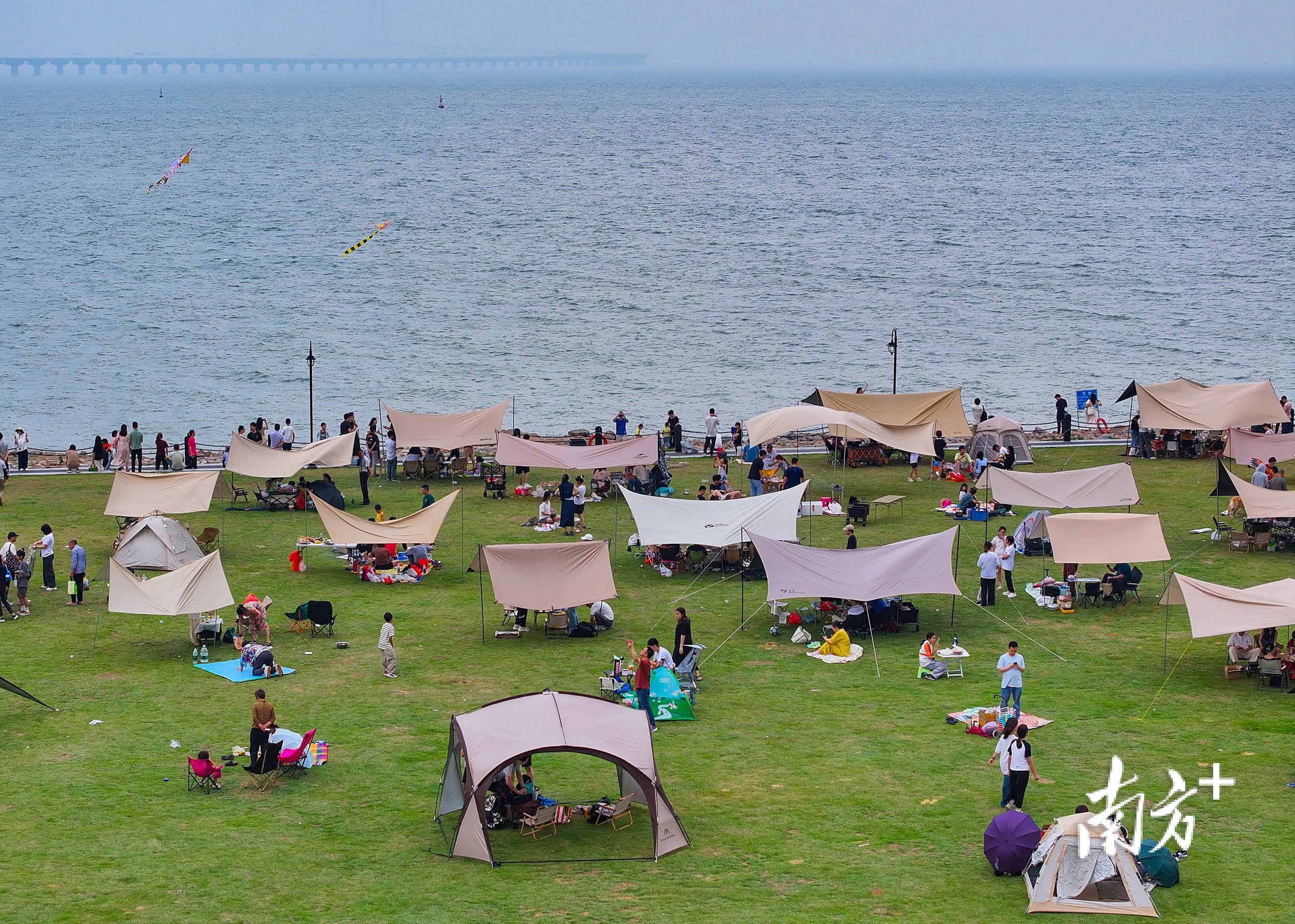 周末或者假期时,翠亨新区海边的大草坪铺满了帐篷。