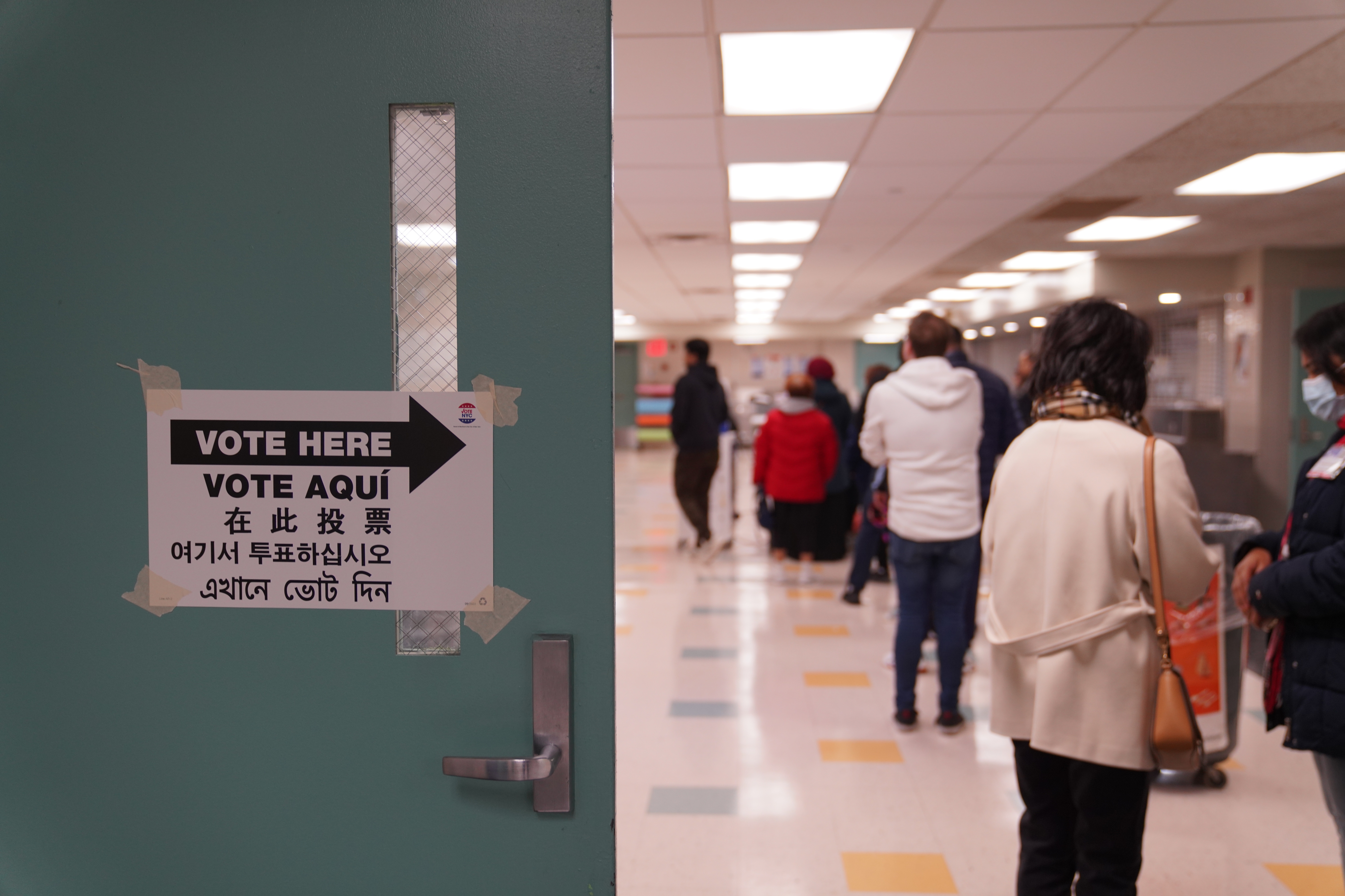 11月4日,在美国纽约市的一个投票站内,选民等候投票。新华社 发