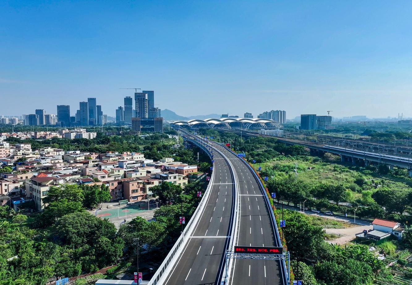 广南快速路南接广州南站枢纽,形成一条东晓路—广南快速路—广州南站的连接线,市民从广州中心城区前往广州南站,可由东晓南高架直接驶入广南快速路主线直达广州南站出发平台,行程时间从现有线路所需的30—40分钟,最多可缩短至15分钟,同时有望缓解广州大道、新光快速等道路的交通压力,进一步提升市民的出行体验。