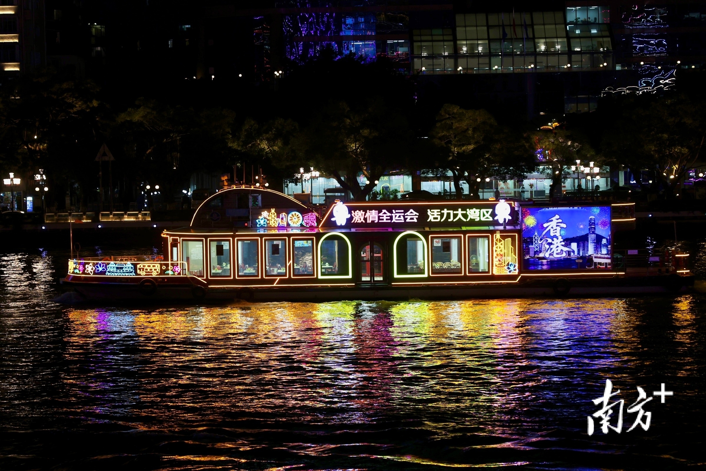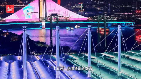 不久前,广州塔换上“海天霞、芰菏绿、菡萸粉”的活力主题色。伴随着珠江夜游响起的十五运会会歌,珠江沿岸化身十五运会预热氛围的高潮点。