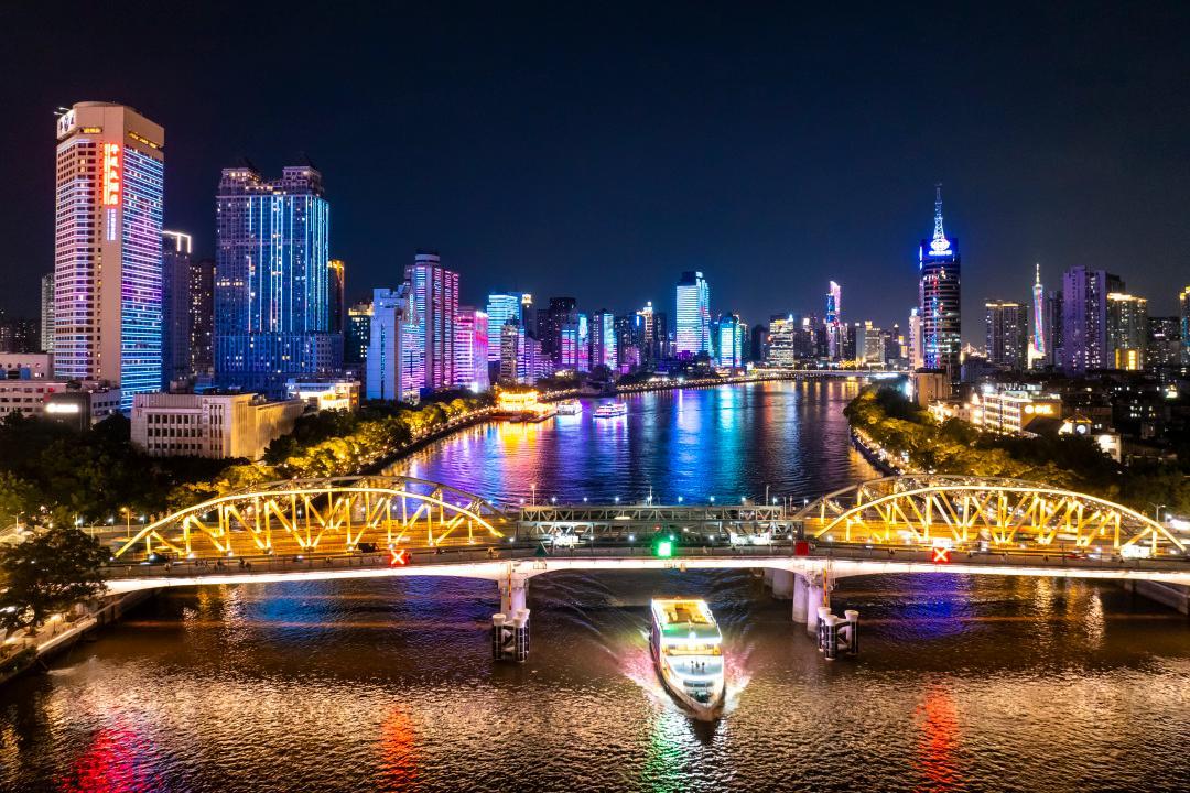 珠江夜景熠熠生辉。图源:广州日报