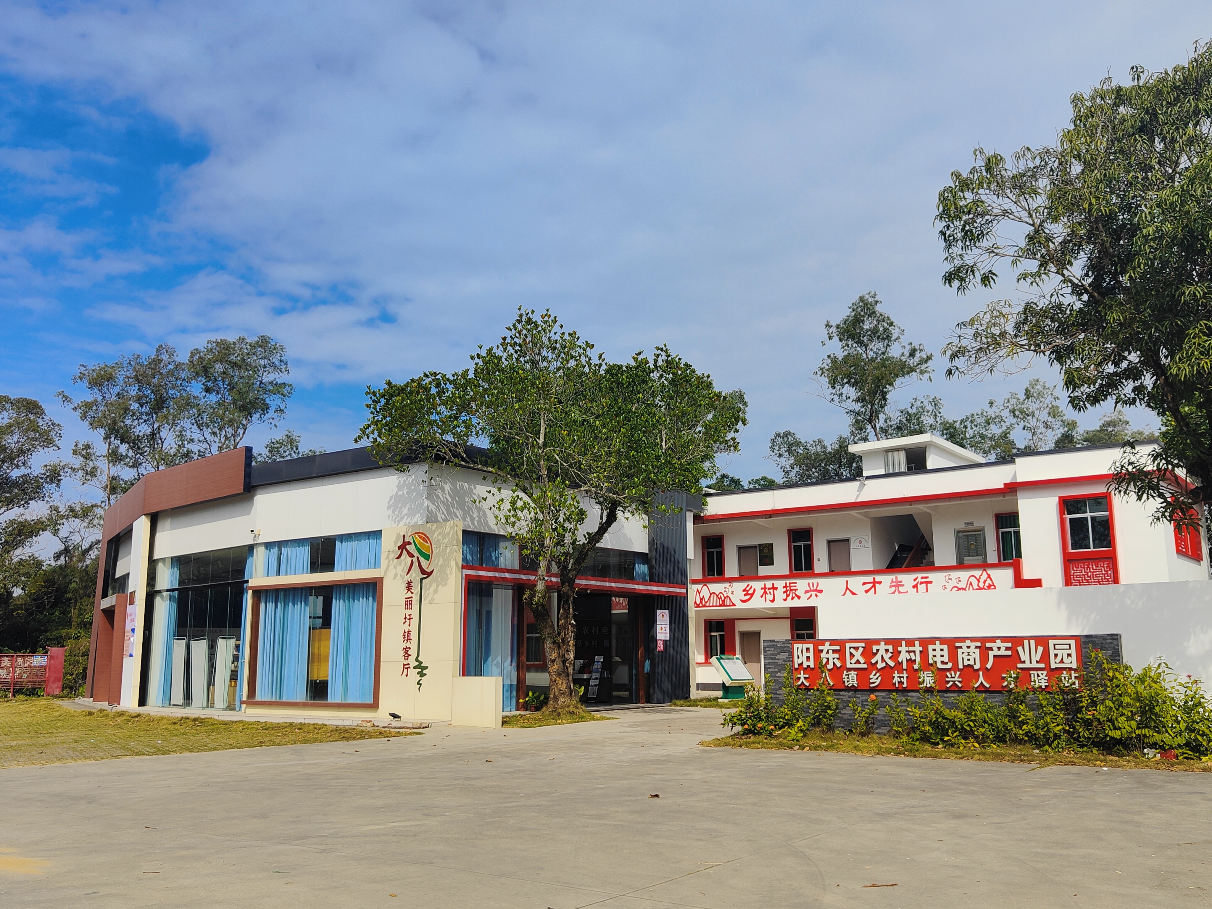 “千年高凉郡,大美八景乡”。大八镇入口处的美丽圩镇客厅,早就是大八人的骄傲。如今更是迎来了新的升级篇章—和阳东区农村电商产业园手拉手,形成“文化展示+产业赋能”的独特格局。