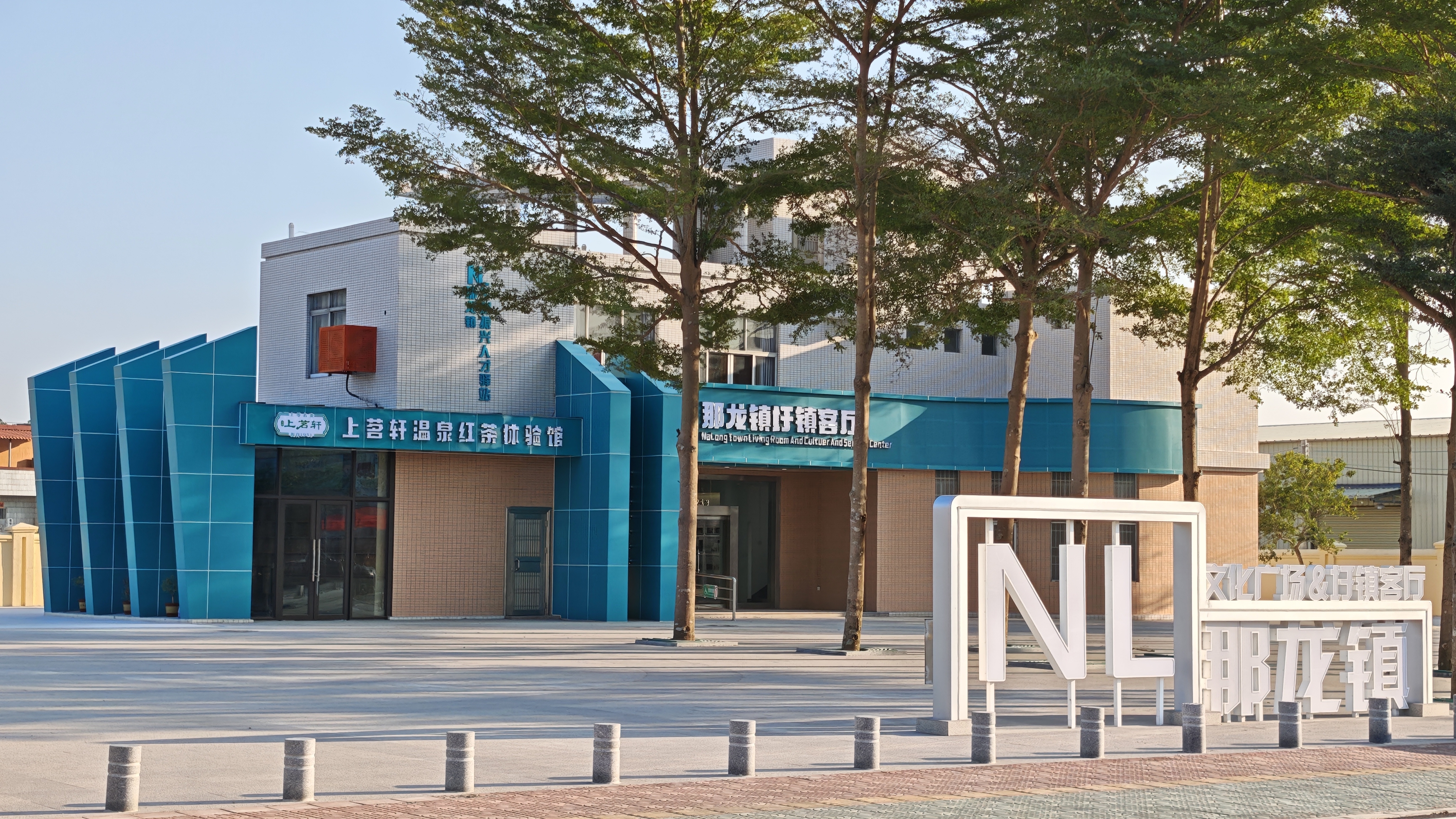 那龙镇美丽圩镇客厅坐落于圩镇主街龙广东路,占地面积达3128平方米,旨在结合G325,打造一个集服务、展示与休闲于一体的多功能公共空间。客厅内部融合历史沿革、文化展示、特色产品展销等功能,常态化开放运营,不仅为镇内居民提供了丰富的文化活动场域,还通过“客厅+驿站”的模式,让过路者变为游客,有效激活镇域经济,提升沿线服务品质与文化吸引力。