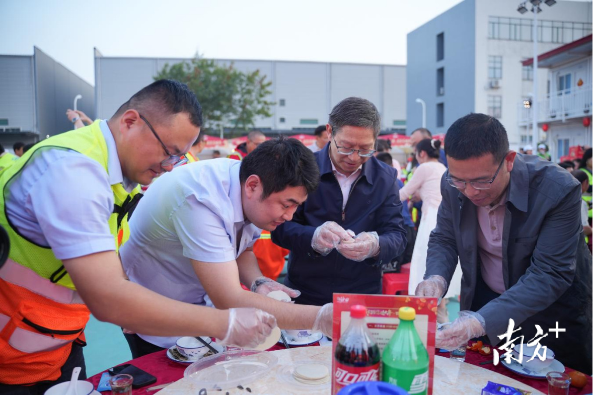 精彩演出、包饺子、围餐团年饭、播放电影……环节一项接着一项展开,工地的节奏慢了下来,气氛也越来越热闹。对不少常年在外奔波的建设者来说,这是难得坐下来、热热闹闹过小年的时刻。