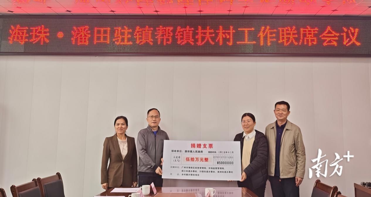 海珠区组团单位向潘田镇捐赠50万乡村振兴项目帮扶资金。