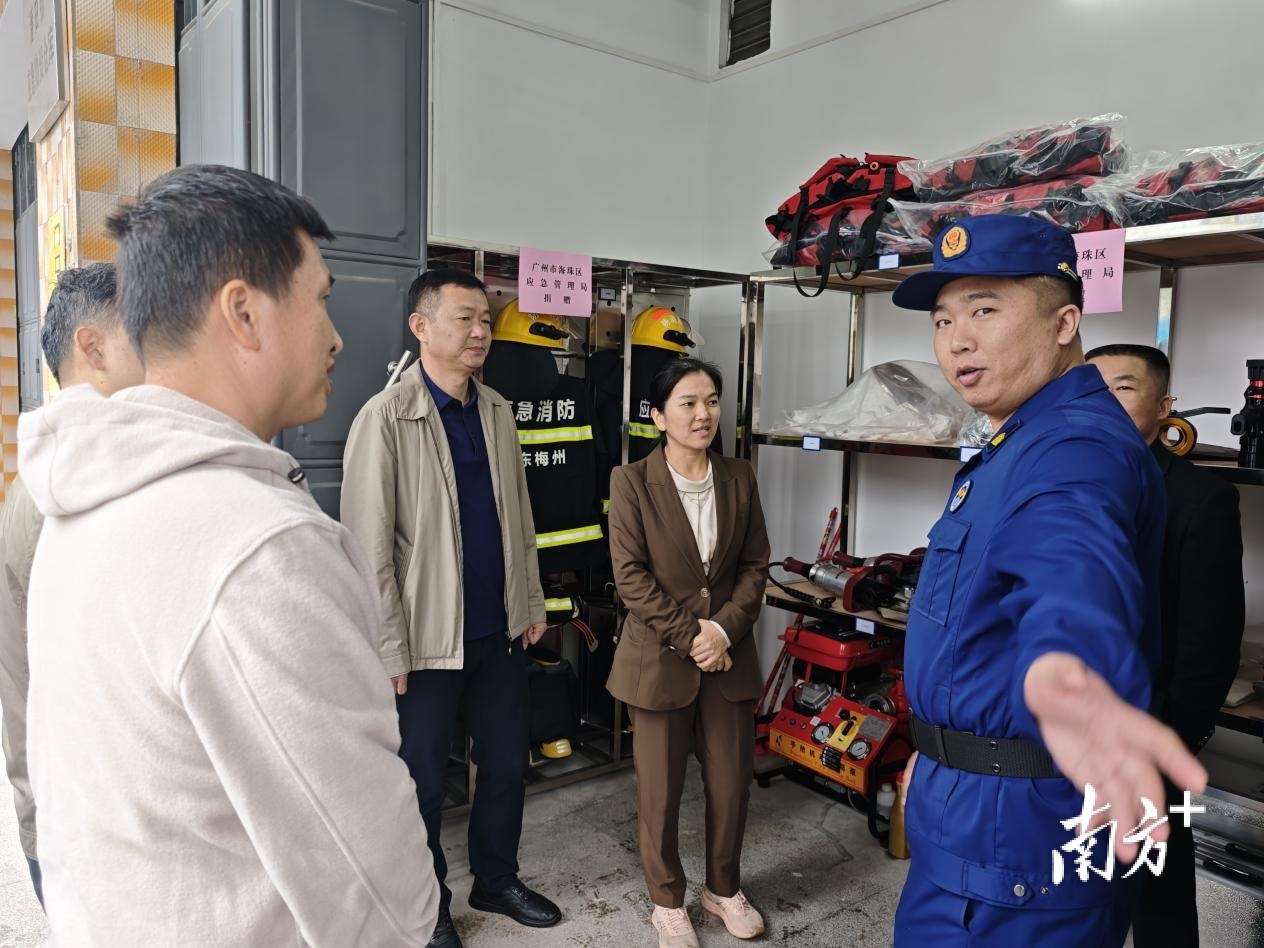 海珠区应急管理局党委书记、局长郭丽琴指导潘田镇应急物资储备管理工作。