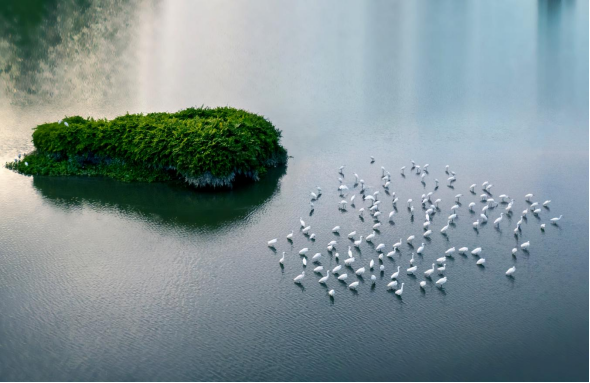 湖光山色,白鹭翩迁,群鱼戏水,306种野生动植物在派潭河流域“安家落户”,彰显出“人水和谐、万物共生”的谐和之美。2020年以来,派潭镇累计完成森林质量提升7.9万亩,其中位于水源保护区的达1.29万亩,为水经济蓬勃发展强韧生态基底。