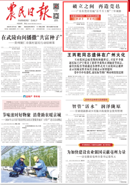 《农民日报》头版刊发了