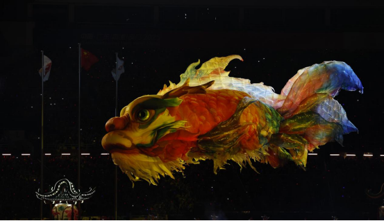 而全运会开幕式上的“鳌鱼”形象,正是来自广州番禺的省级非遗——鳌鱼舞。传说中,金色鲤鱼想跳过龙门变成龙,但因为偷吞了龙珠,变成了龙头鱼身的模样,也就是鳌鱼——代表“独占鳌头”,是吉祥和成功的象征。