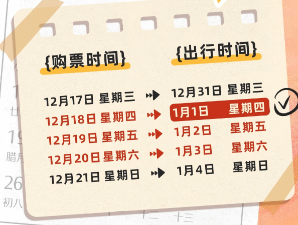 2025年“进度条”即将加载完毕,元旦假期越来越近。准备在假期出行的朋友,记得定好闹钟,提前锁定通向目的地的火车票。2026年1月1日出行,2025年12月18日(周四)购票。购票日历>>