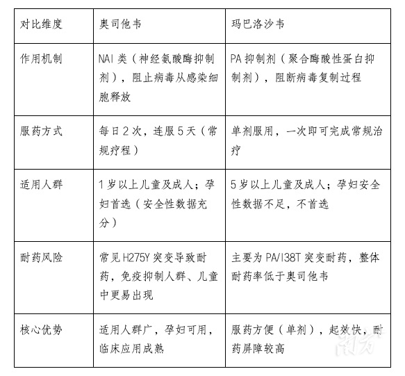 2025年《中国流感抗病毒药物联合使用专家共识》(下称“共识”)明确:早期抗病毒是关键。目前我国批准上市、使用最广泛的抗病毒药物主要包括奥司他韦和玛巴洛沙韦,两种药物到底应该怎么选?