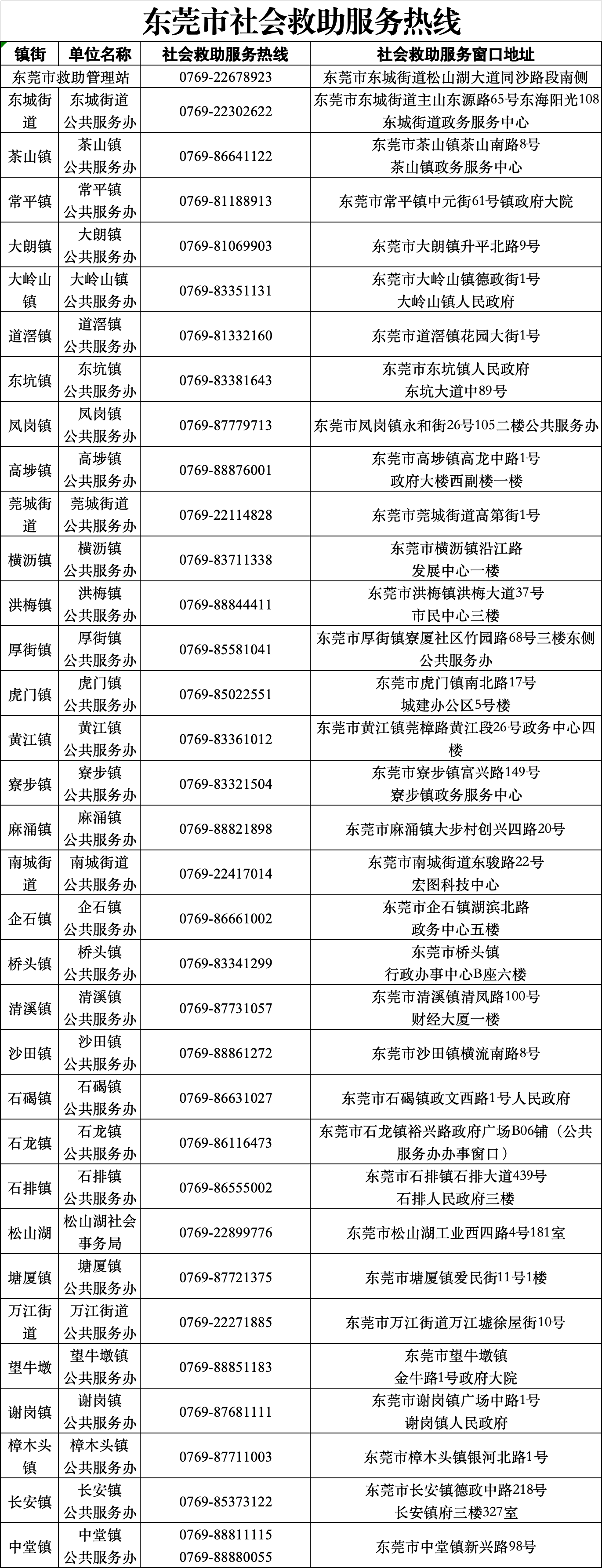 请拨打各镇街、园区和市救助管理站24小时社会救助热线,东莞民政人已在全天温暖守候,御寒物资、生活救助、暖心关怀一应俱全。