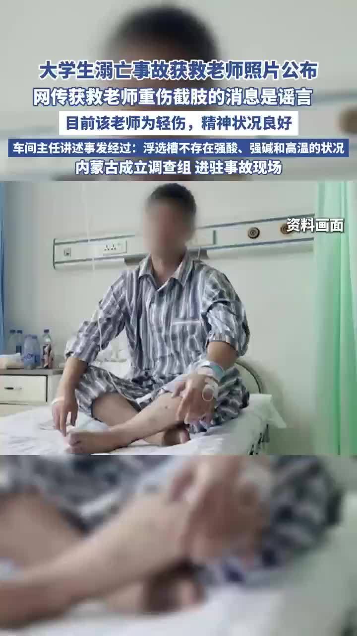 据“中国之声”报道,针对网传获救老师重伤截肢的消息,记者24日下午专程到当地医院看望了老师,目前该老师为轻伤,正在恢复中。详情>>