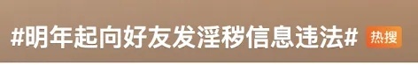 有媒体发现,“明年起向好友发送不雅照片、视频违法”“明年起传播淫秽信息违法”等词条被大量转发,引发网友热烈讨论,其中,不少内容存在误读和泛读。