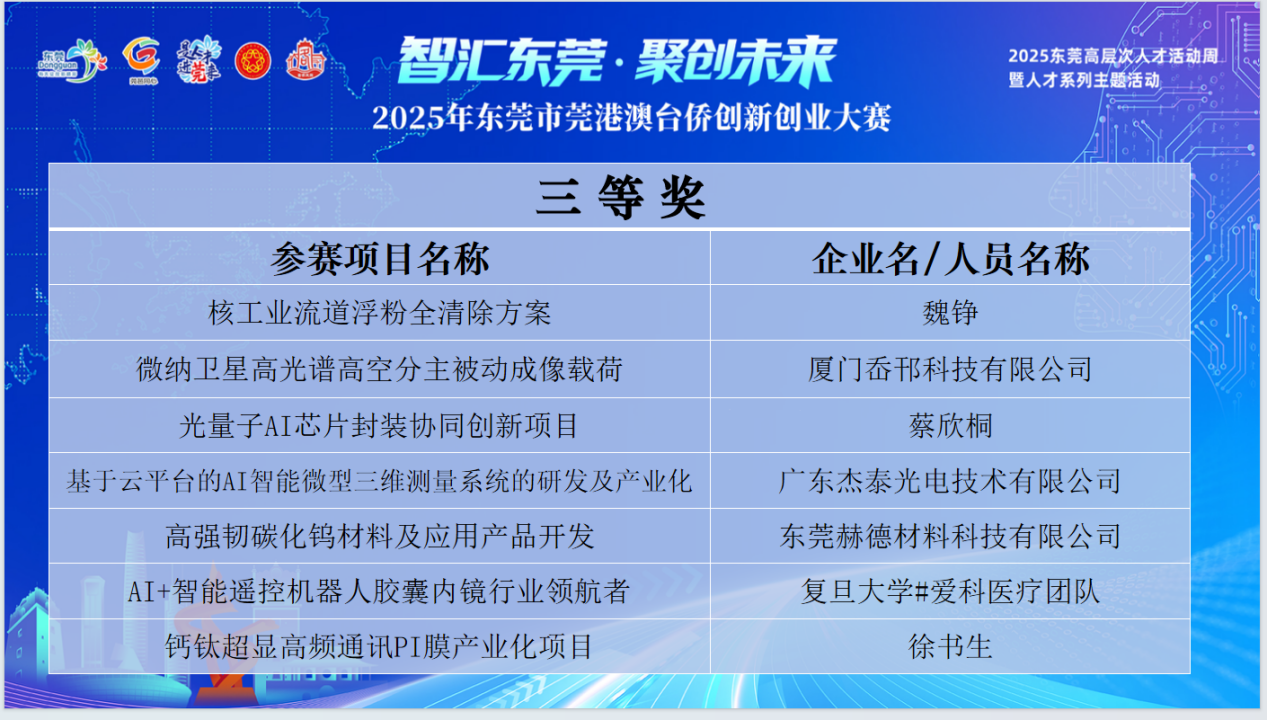 深圳市深磁创芯科技有限公司是一家致力于研发下一代存算一体磁芯片的初创企业,在本次大赛中获得二等奖。赛后,团队成员表示,东莞坚实的制造业基础与邻近下游客户的区位优势,将为其后续发展提供强大助力。他们表示通过此次大赛结识了众多优秀同行,期待能充分享受当地针对人才、初创企业及港澳台项目的各项扶持政策。