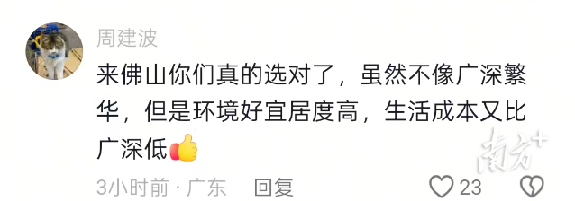 评论区内的“老佛山”自豪表示:“来佛山你们真的选对了。”