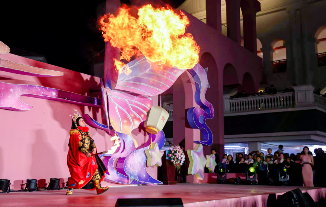 春节活动的精彩远不止于此,活动期间游客可以在粉色流溪瀑布许愿池投下心愿,祈求新年好运;2月14日情人节当晚,8字楼梯处还将上演“心花怒放”心型冷焰火,为节日增添一份独特的浪漫。