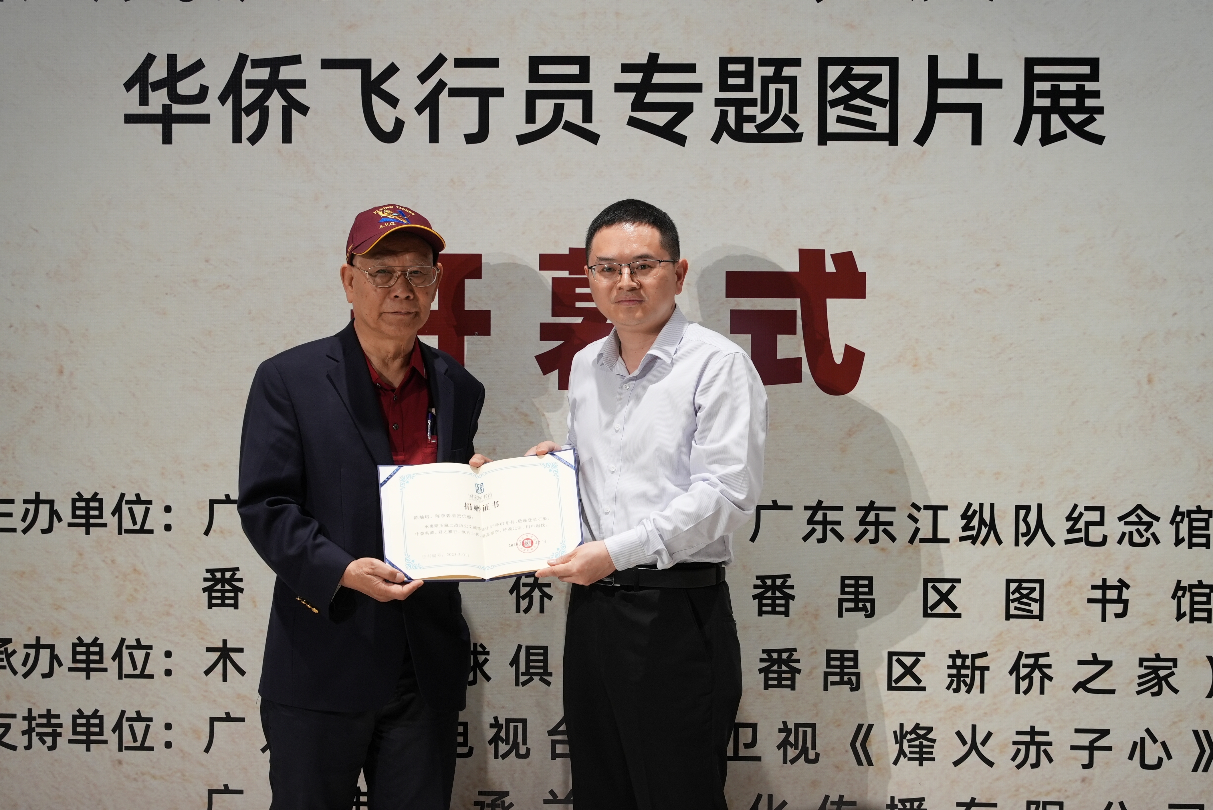 5月13日,陈灿培再次来到广州,出席“华侨雄鹰 抗日飞虎”华侨飞行员专题图片展。开幕式现场,他向国内几家博物馆捐赠了一批个人藏品,包括二战期间报道中美两国联合抗日的美国杂志、飞虎队相关文物等。