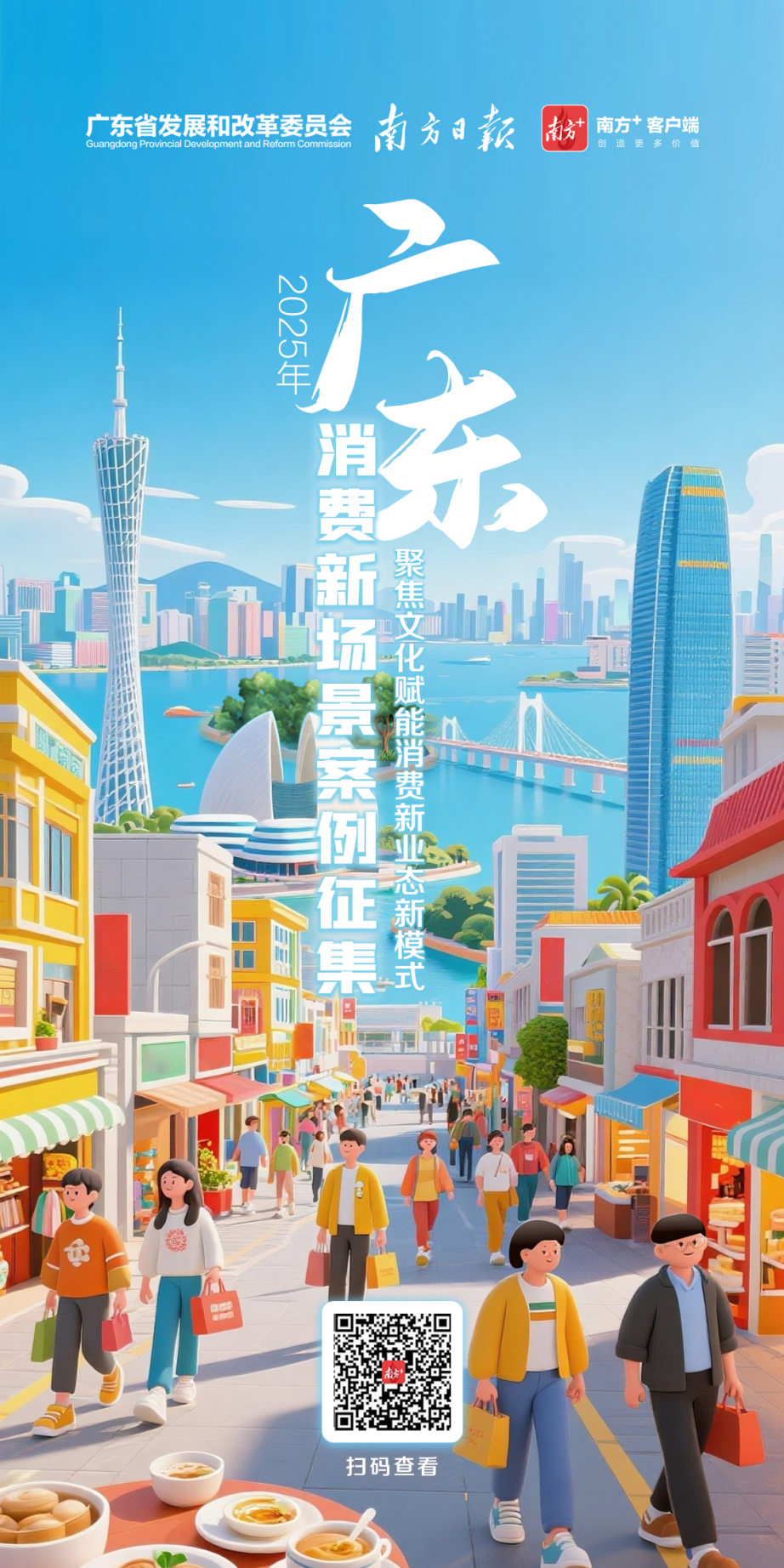 为深入落实中共中央办公厅、国务院办公厅《提振消费专项行动方案》及《广东省提振消费专项行动实施方案》要求,加快培育一批消费新场景打造消费新增长点,南方日报、南方+客户端联合省发展改革委开展“粤蕴新场景·消费新势能”2025年广东消费新场景案例征集活动,聚焦文化赋能消费新业态新模式,征集一批特色鲜明、示范效应突出的消费新场景典型案例。