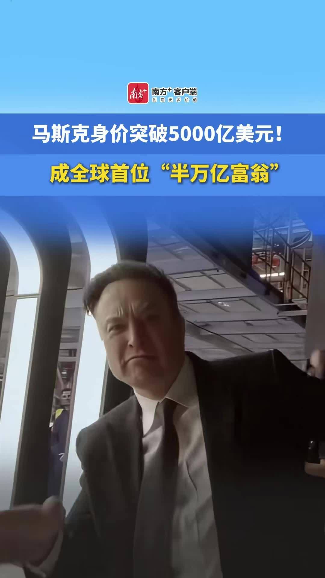 马斯克身价突破5000亿美元,成全球首位“半万亿富翁”