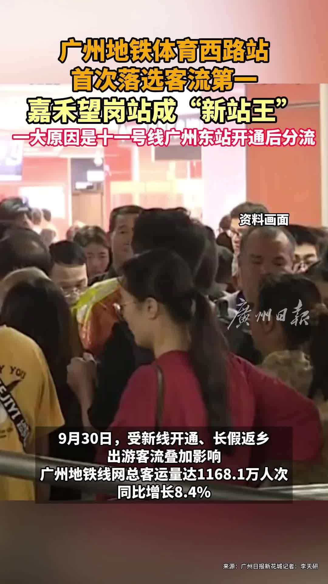 广州地铁体育西路站首次“痛失”客流第一,嘉禾望岗站成“新站王”