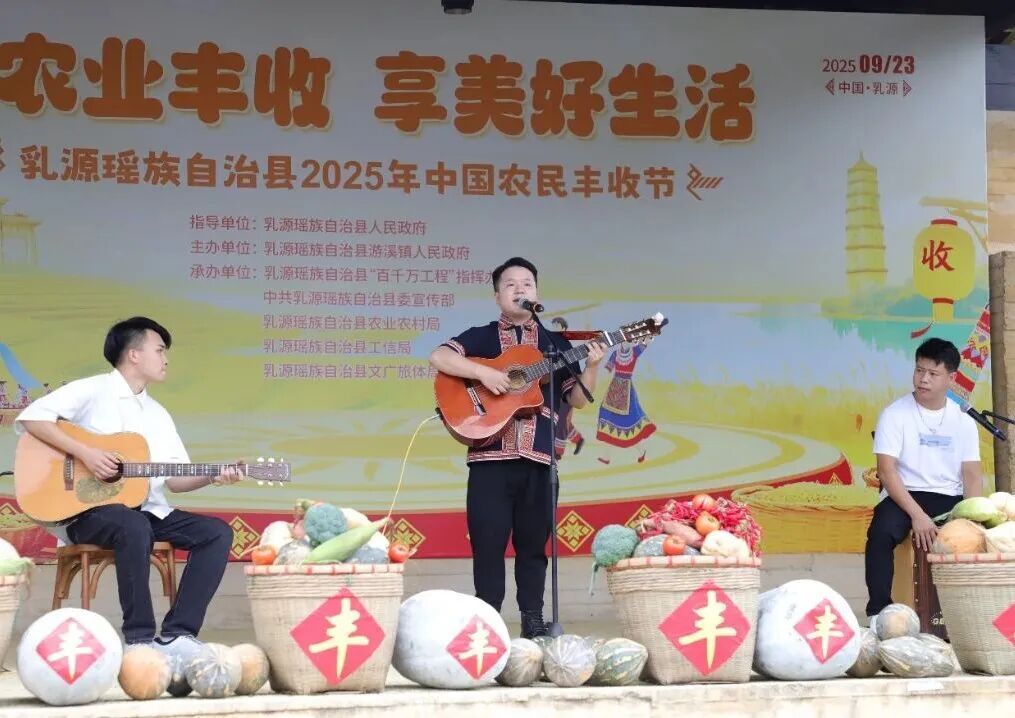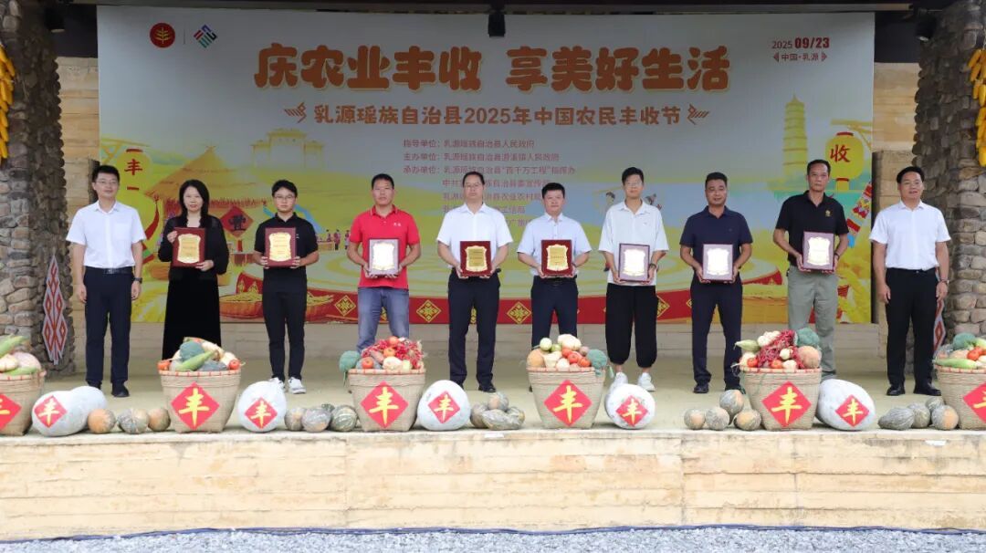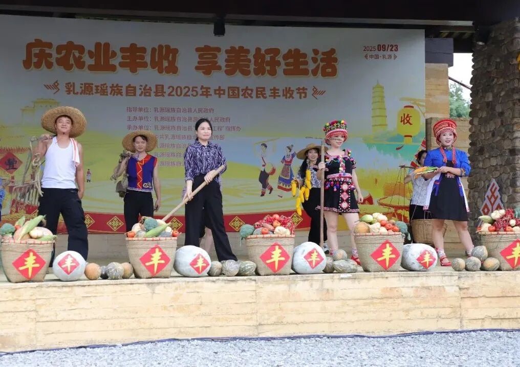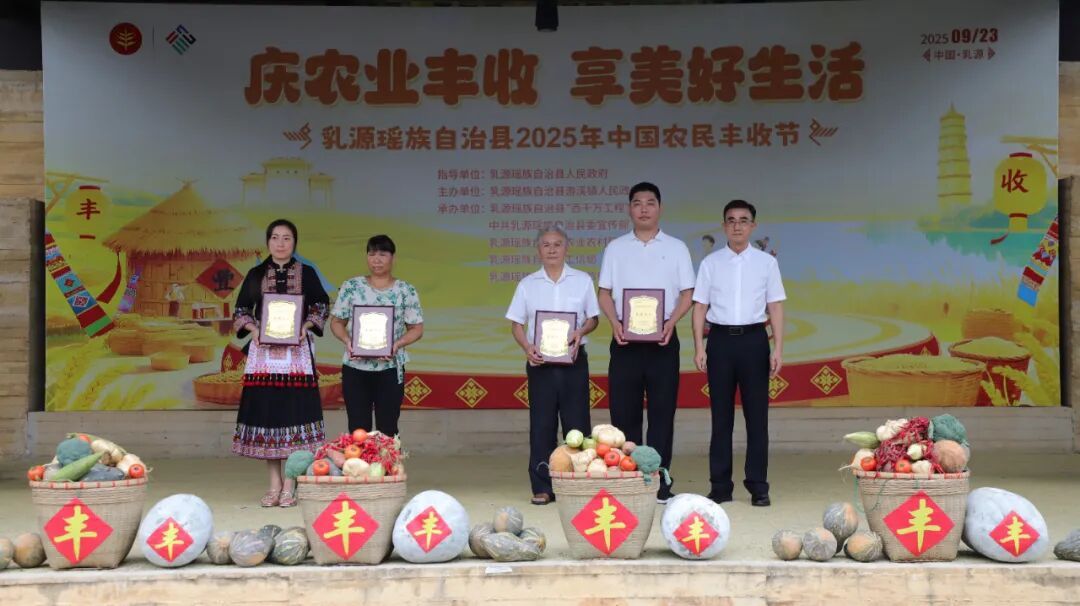 秋风送爽,瑶乡欢歌;硕果盈枝,共庆丰年。9月23日,乳源游溪镇瑶客共生广场洋溢着丰收的喜悦,一年一度的中国农民丰收节乳源主会场活动在此举行。本届丰收节以“庆农业丰收,享美好生活”为主题,全面展示乳源在 “百县千镇万村高质量发展工程” 和乡村振兴战略引领下,农业发展的新成就、农村面貌的新变化和劳动人民的新风采。市人大常委会副主任、县委书记陈大川,市农业农村局四级调研员黄文年,县委副书记林劲标、林欣等市县领导在主会场与广大农民代表、农业企业、游客齐聚一堂共享丰收喜悦。