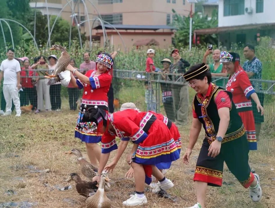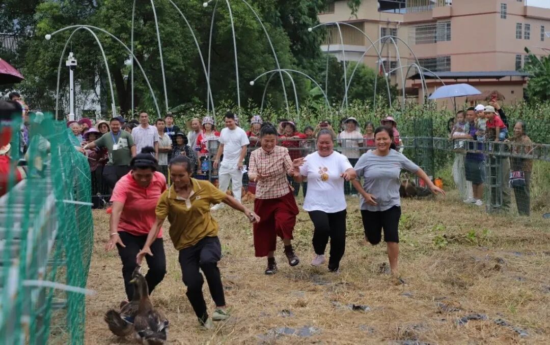 在农田周边,本次活动还精心准备了农民趣味运动会等一系列精彩有趣的运动游戏,众多游客朋友聚集在一起,在游戏中进行紧张激烈的“丰收争夺战”,并纷纷将鸡鸭等各类“战利品”纳入囊中。